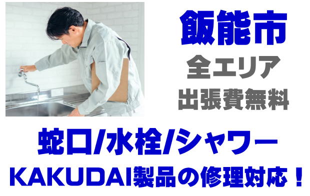 飯能市で水栓メーカーKAKUDAIの修理業者をお探しなら当社までお気軽にお問い合わせください。蛇口の水漏れ、シャワーの故障などカクダイ製に関するトラブルなら何でもご相談ください。