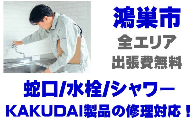 鴻巣市で水栓メーカーKAKUDAIの修理業者をお探しなら当社までお気軽にお問い合わせください。蛇口の水漏れ、シャワーの故障などカクダイ製に関するトラブルなら何でもご相談ください。