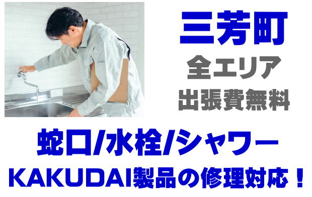 三芳町で水栓メーカーKAKUDAIの修理業者をお探しなら当社までお気軽にお問い合わせください。蛇口の水漏れ、シャワーの故障などカクダイ製に関するトラブルなら何でもご相談ください。