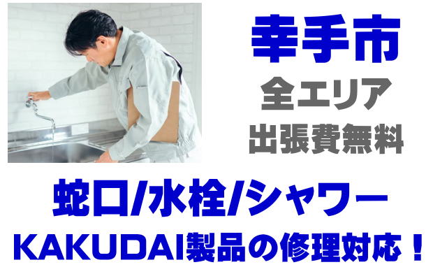 幸手市で水栓メーカーKAKUDAIの修理業者をお探しなら当社までお気軽にお問い合わせください。蛇口の水漏れ、シャワーの故障などカクダイ製に関するトラブルなら何でもご相談ください。